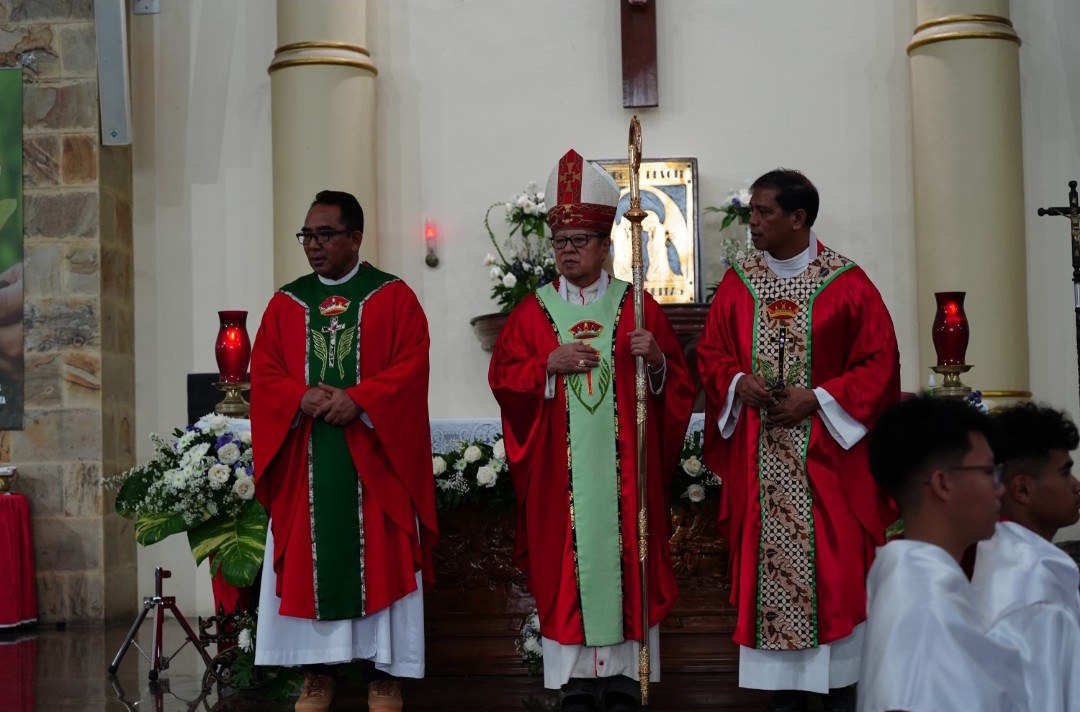 Salah satunya, untuk pertama kalinya dalam 16 tahun pelayanan Bapak Kardinal, para penerima Krisma menggunakan busana berwarna merah.