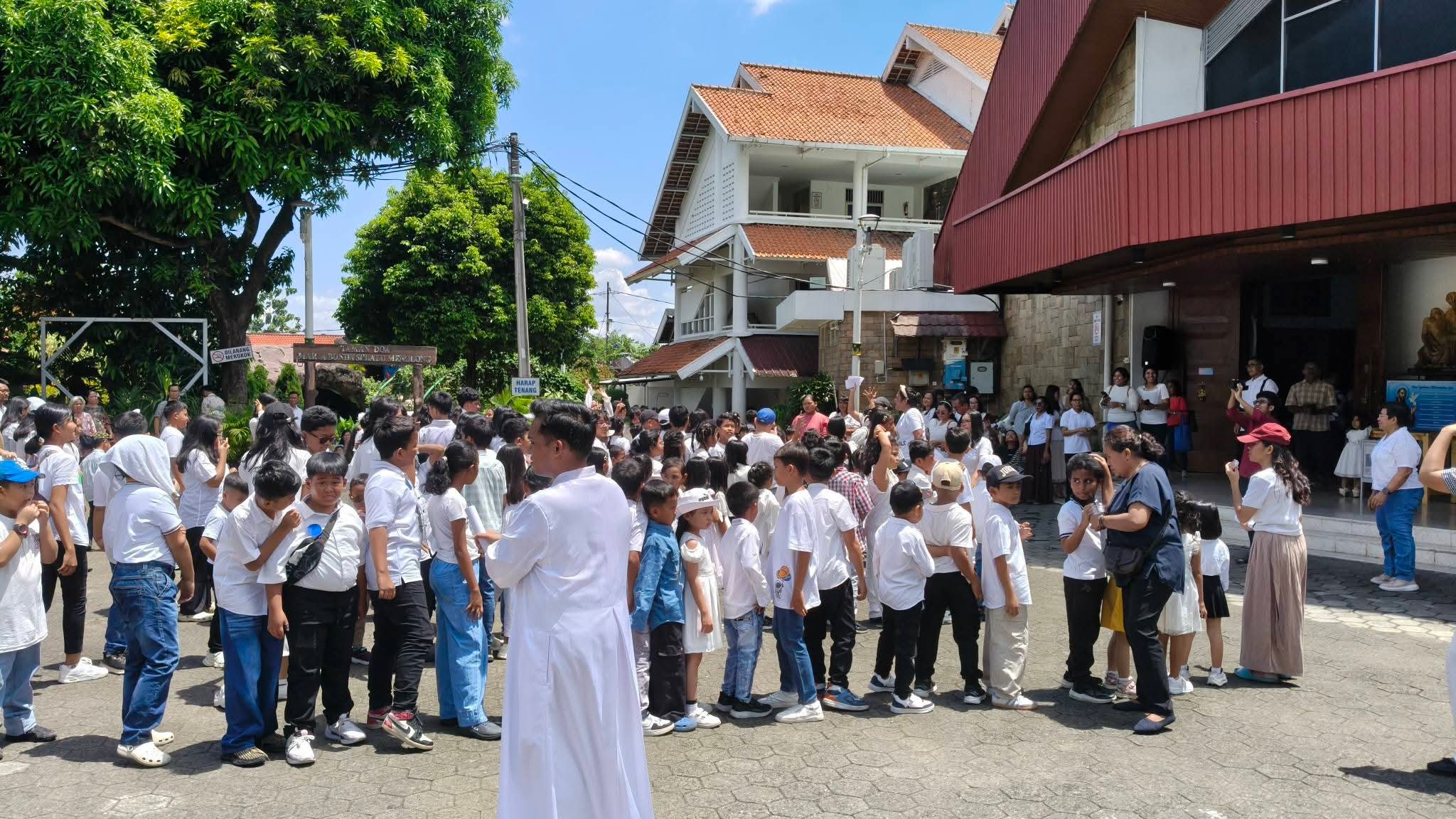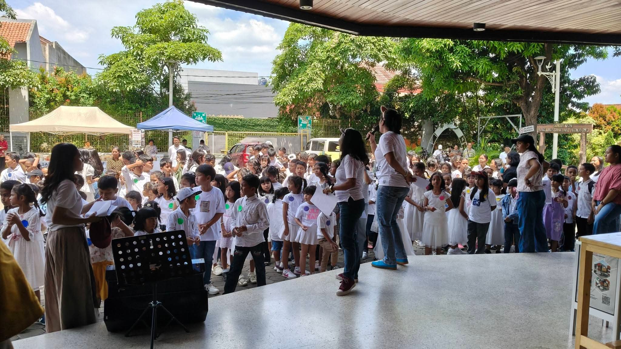 Pagi itu, jam 10.00, matahari bersinar terang sekali. Udara juga enak, tidak panas berlebihan, tidak juga mendung. Cocok sekali untuk anak-anak yang datang dengan wajah ceria, pakai baju bagus, ditemani orang tua mereka. Dari jauh sudah kelihatan: ada yang senyum lebar, ada yang lari-lari kecil, ada juga yang masih pegang tangan mama atau papa. Hari ini mereka bukan cuma datang duduk diam.
